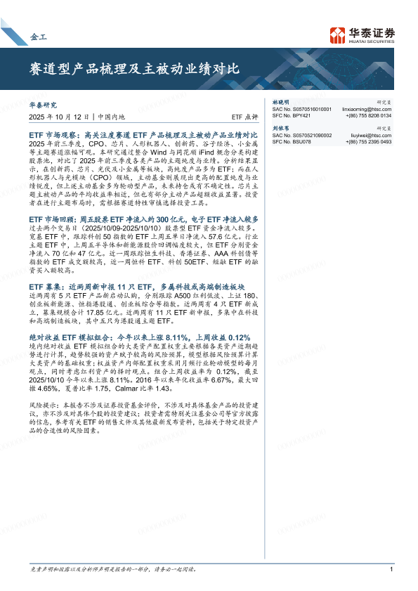 【华泰证券】【202510】赛道型产品梳理及主被动业绩对比-14页