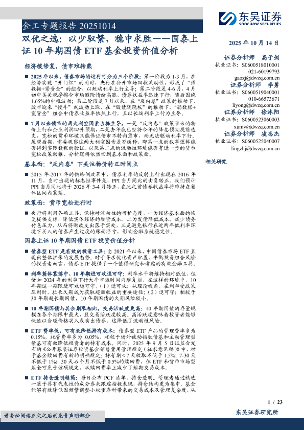 【东吴证券】【202510】双优之选:以少驭繁,稳中求胜——国泰上证10年期国债 ETF基金投资价值分析-23页