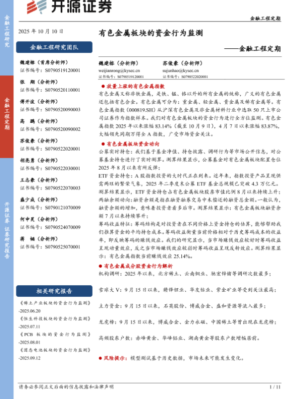 【开源证券】【202510】有色金属板块的资金行为监测-11页