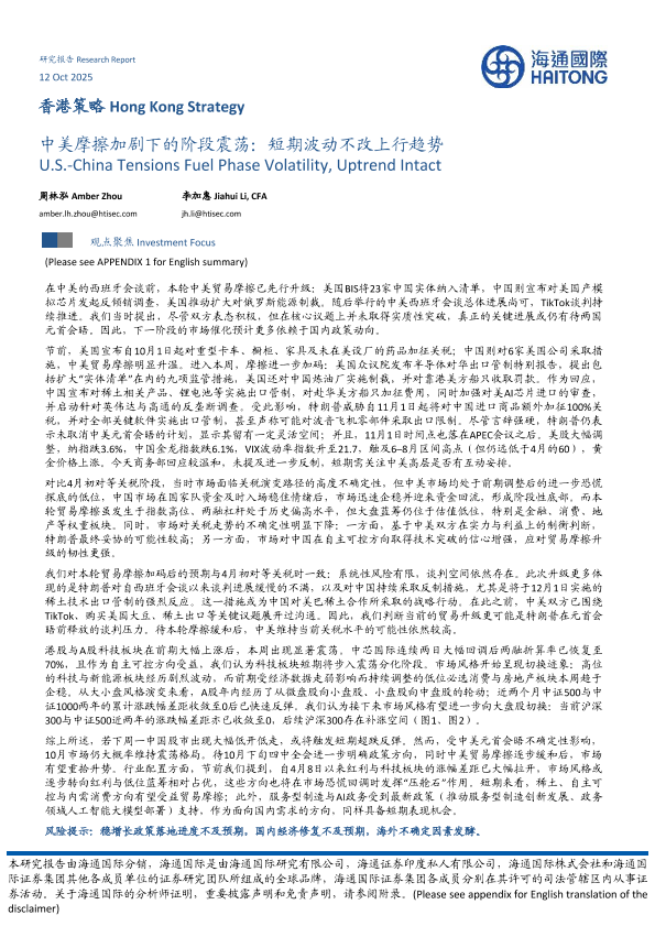 【海通国际】【202510】香港策略:中美摩擦加剧下的阶段震荡,短期波动不改上行趋势-10页