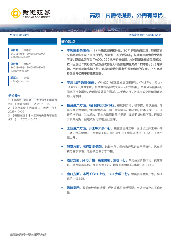 【财通证券】【202510】高频|内需待提振,外需有隐忧-15页