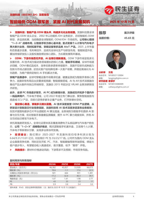 【民生证券】【202510】龙旗科技(603341.SH)深度报告:智能端侧 ODM领军者,紧握 AI时代发展契机-38页