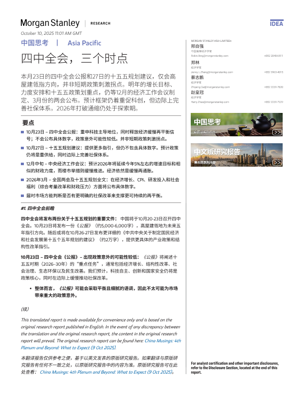 【Morgan Stanley】【202510】中国思考 四中全会,三个时点-5页