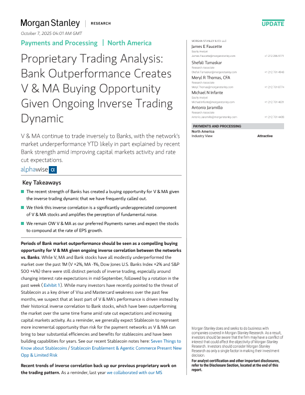 【Morgan Stanley】【2025】Proprietary Trading Analysis Bank Outperformance Creates V& MA Buying Opportunity Given Ongoing Inverse Trading Dynamic-16页