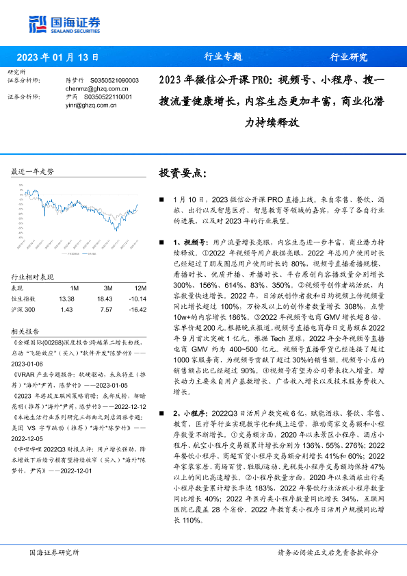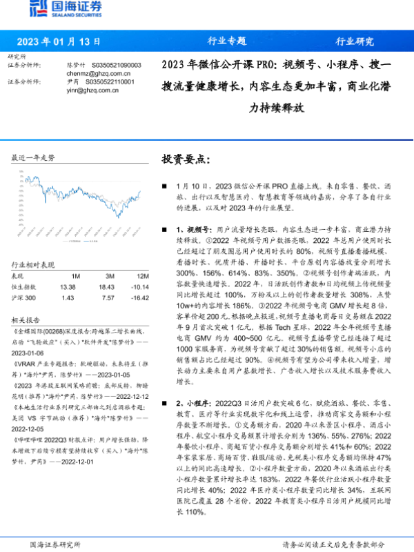 【国海证券】【20230113】互联网行业2023年微信公开课PRO:视频号、小程序、搜一搜流量健康增长,内容生态更加丰富,商业化潜力持续释放-13页