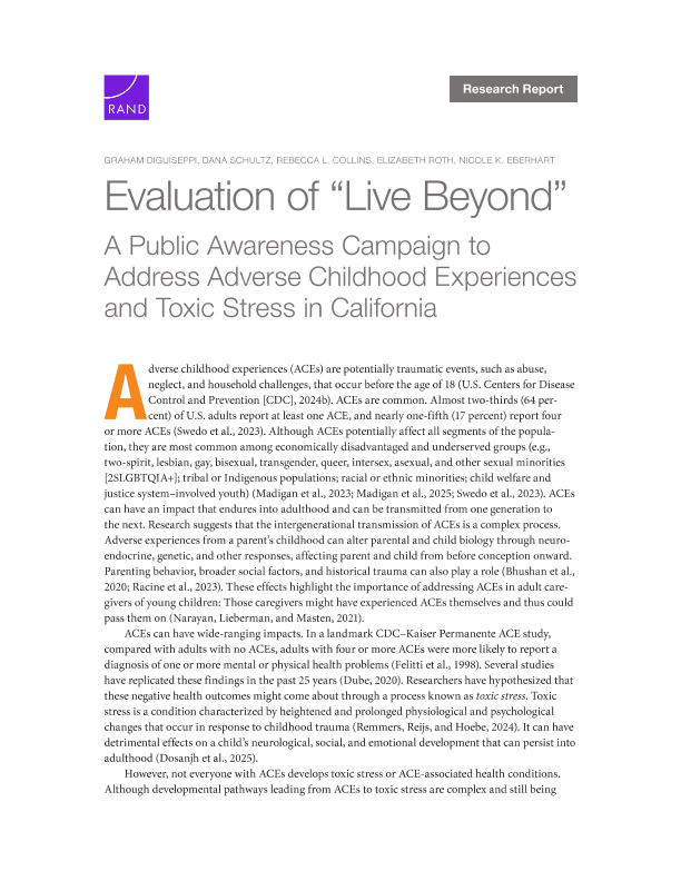 【Civilian&RAND】【2025】Live Beyond A Public Awareness Campaign to Address Adverse Childhood Experiences and Toxic Stress in California-68页