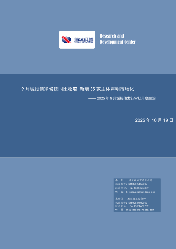 【信达证券】【202510】2025年9月城投债发行审批月度跟踪:9月城投债净偿还同比收窄新增35家主体声明市场化-18页