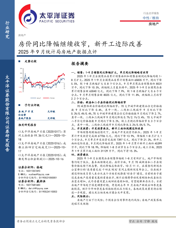【太平洋证券】【202510】房价同比降幅继续收窄,新开工边际改善-251021-太平洋证券-12页.pdf-12页