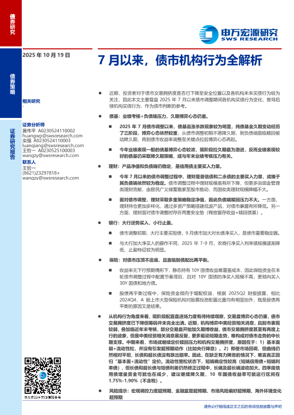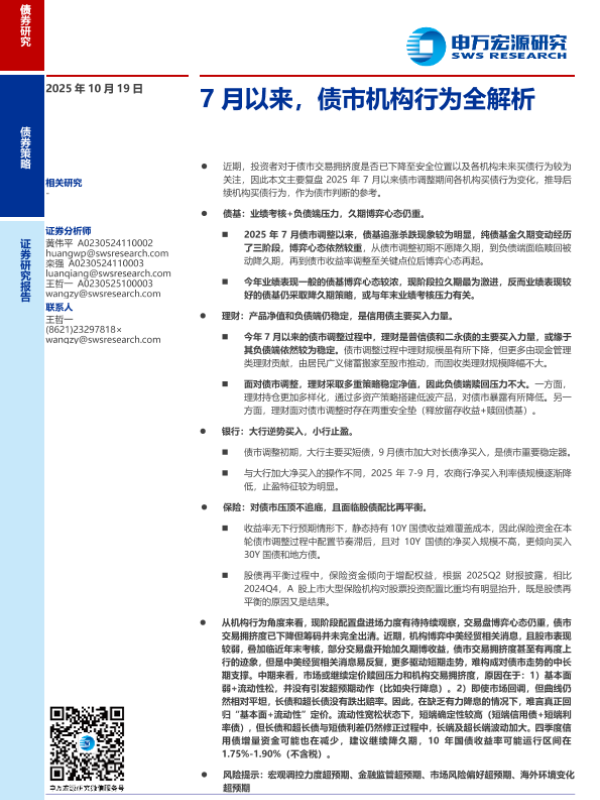 【申万宏源】【202510】7月以来,债市机构行为全解析-13页