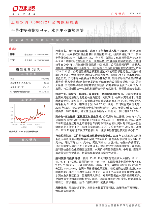 【方正证券】【202510】上峰水泥(000672)公司跟踪报告:半导体投资花期已至,水泥主业蓄势涅槃-12页