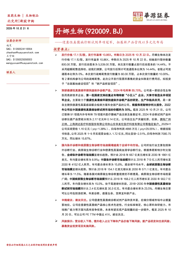 【华源证券】【202510】丹娜生物(920009.BJ)——侵袭性真菌病诊断试剂单项冠军,拓展新产品管线以多元化布局-19页