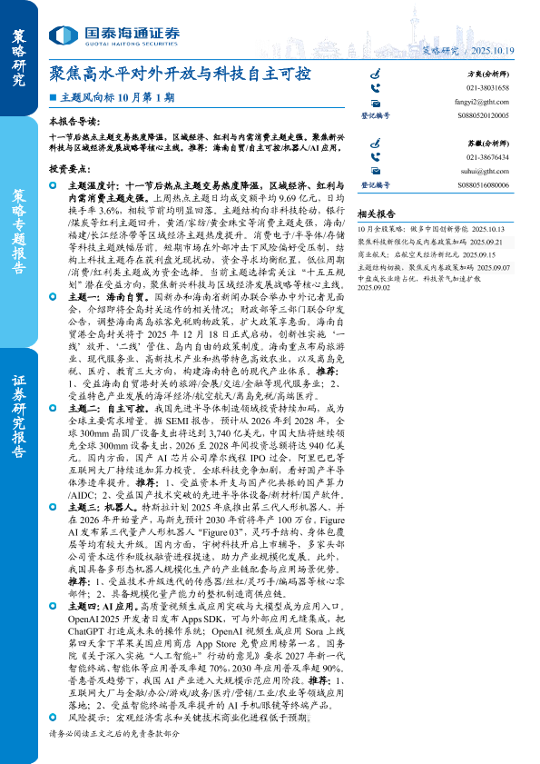 【国泰海通】【202510】主题风向标10月第1期:聚焦高水平对外开放与科技自主可控-13页