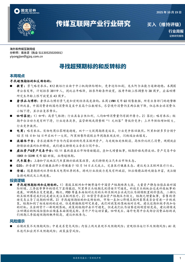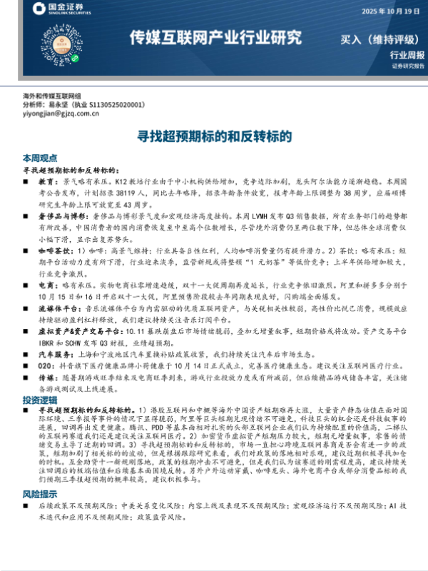 【国金证券】【202510】传媒互联网产业行业研究:寻找超预期标的和反转标的-16页