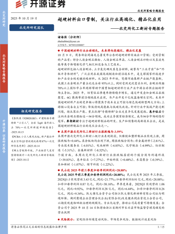 【开源证券】【202510】北交所化工新材专题报告:超硬材料出口管制,关注行业高端化、精品化应用-15页