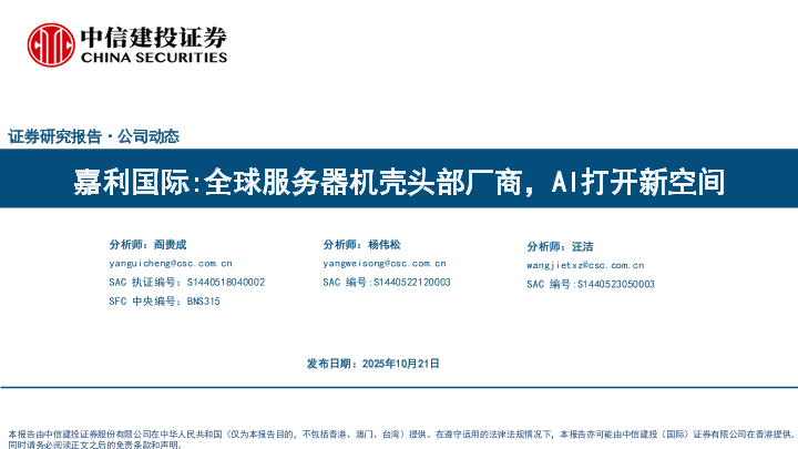 【中信建投证券】【202510】嘉利国际 全球服务器机壳头部厂商,AI打开新空间-22页