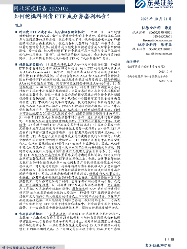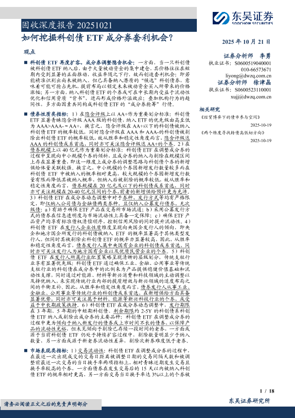 【东吴证券】【202510】固收深度报告:如何挖掘科创债ETF成分券套利机会?-18页