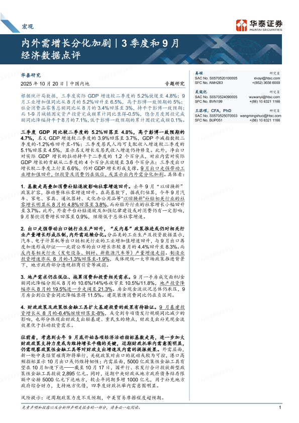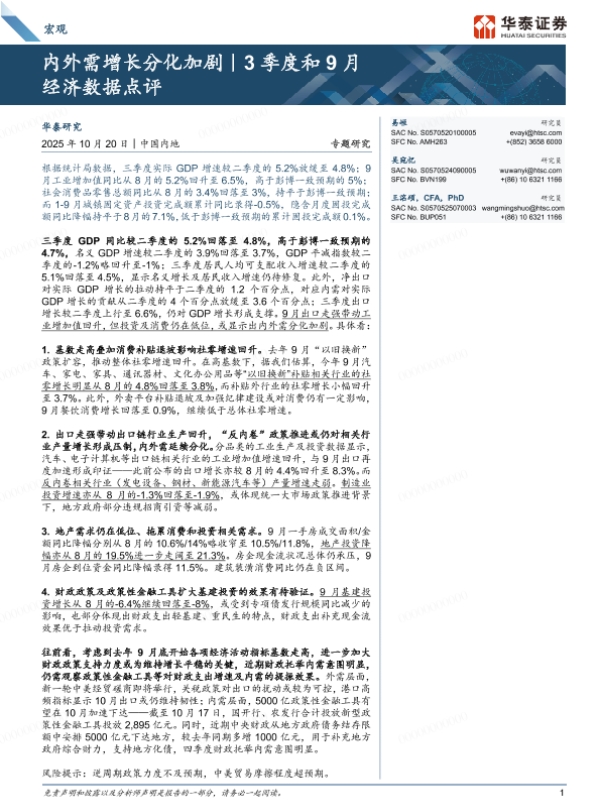 【华泰证券】【202510】宏观:内外需增长分化加剧|3季度和9月经济数据点评-10页