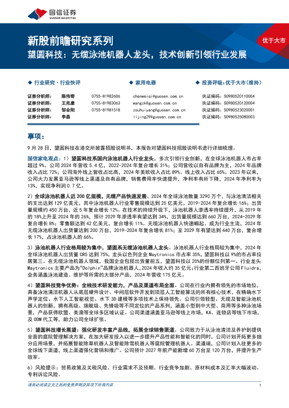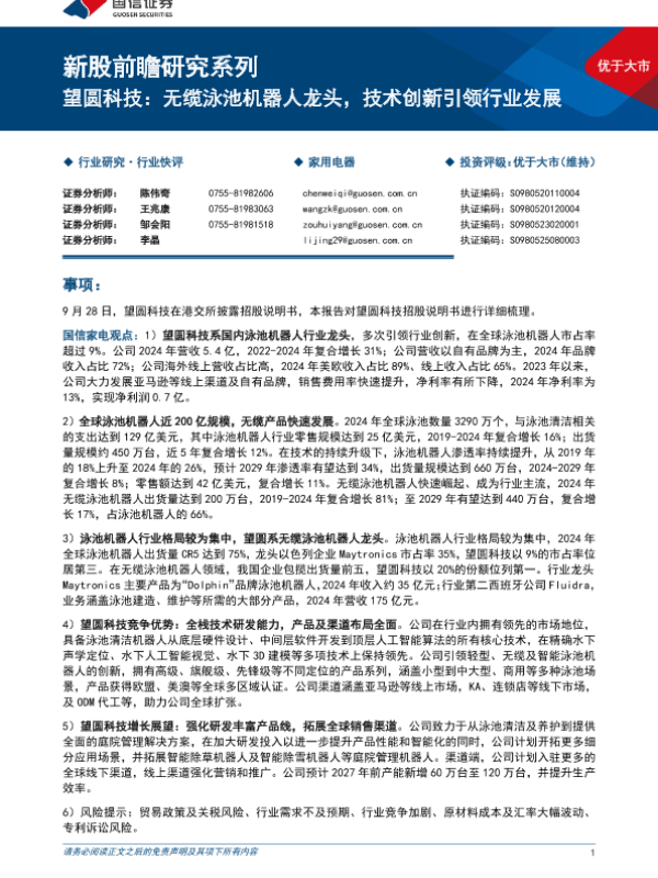 【国信证券】【202410】望圆科技:无缆泳池机器人龙头,技术创新引领行业发展-12页