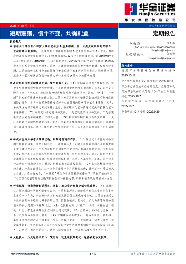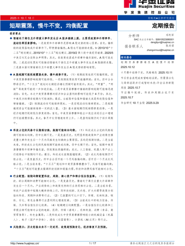 【华金证券】【202510】短期震荡,慢牛不变,均衡配置-17页