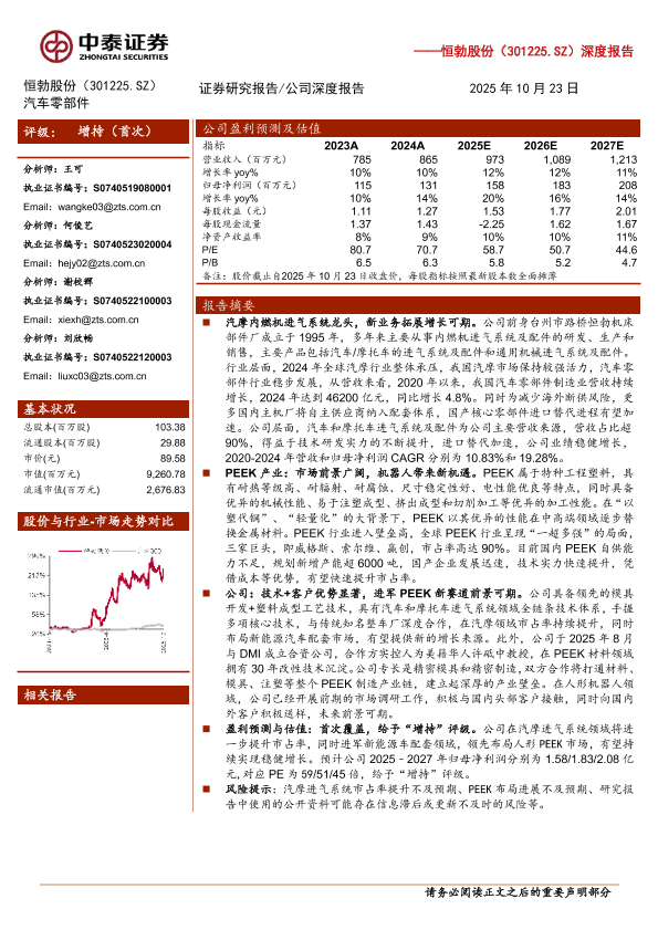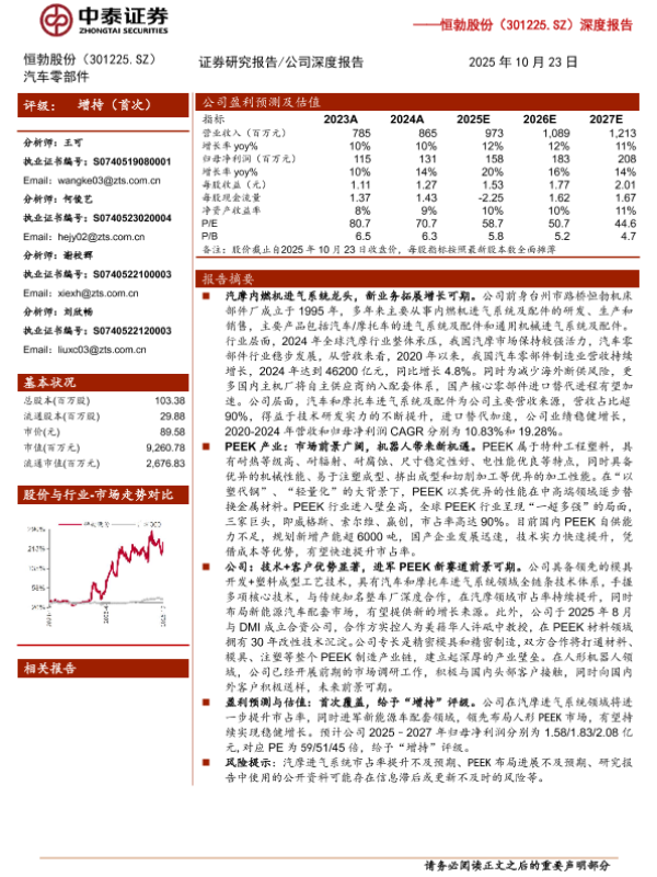 【中泰证券】【202510】恒勃股份(301225)深度报告:汽摩内燃机进气系统龙头,布局PEEK领域拓展第二增长曲线-25页