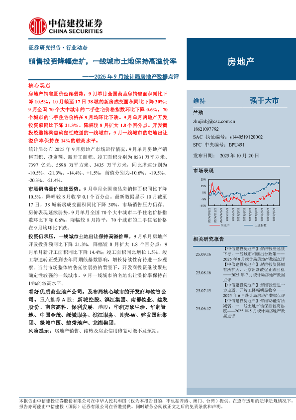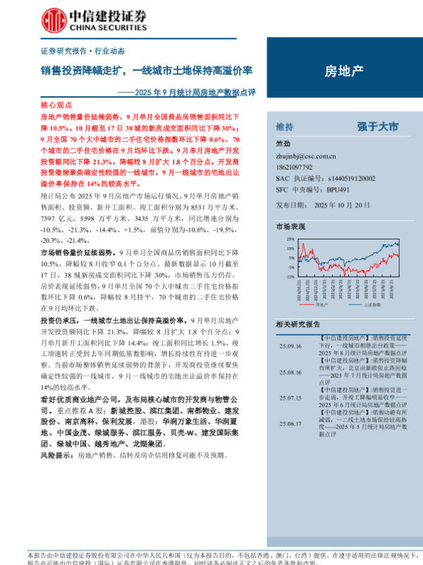【中信建投证券】【202510】销售投资降幅走扩,一线城市土地保持高溢价率——2025年9月统计局房地产数据点评-10页