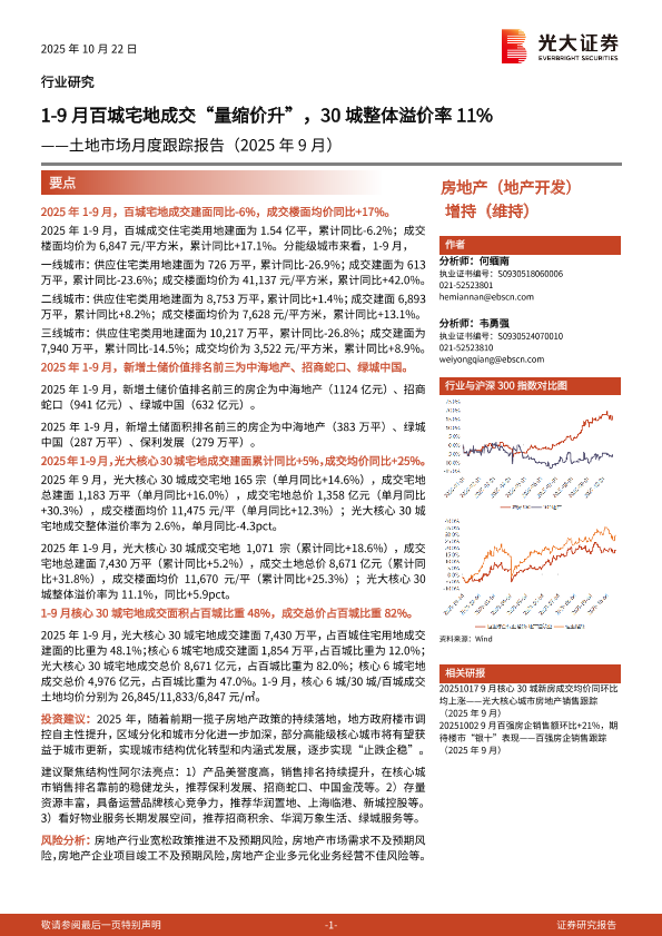 【光大证券】【202509】1-9月百城宅地成交“量缩价升”,30城整体溢价率 11%——土地市场月度跟踪报告(2025年 9月)-16页