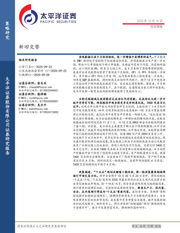 【太平洋证券】【202510】投资策略:新旧交替-23页