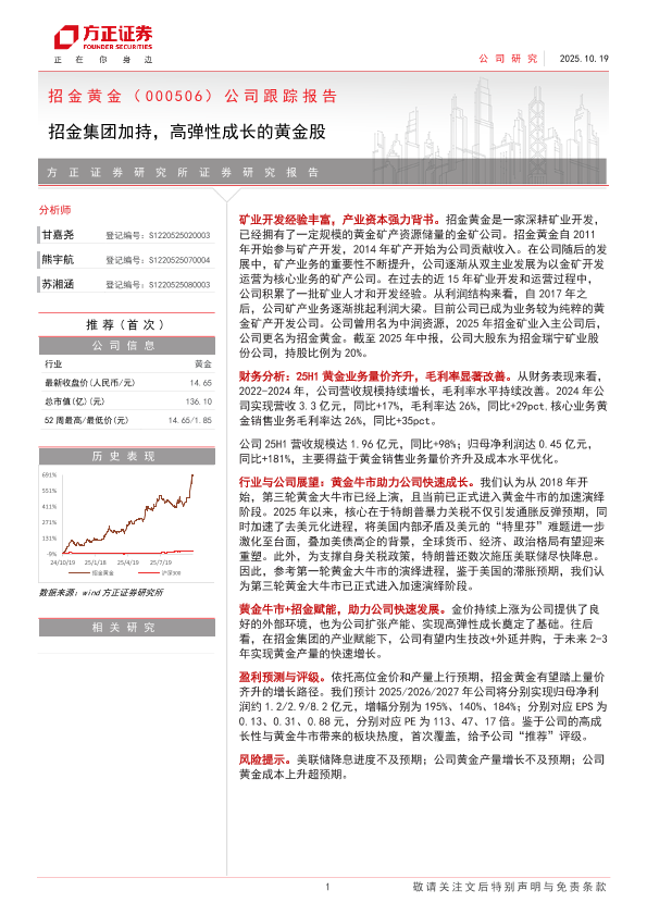 【方正证券】【202510】招金黄金(000506)公司跟踪报告:招金集团加持,高弹性成长的黄金股-18页
