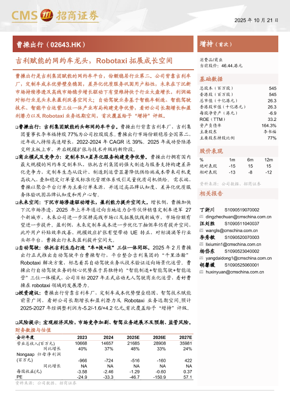 【海通证券】【202510】吉利赋能的网约车龙头,Robotaxi拓展成长空间-25页