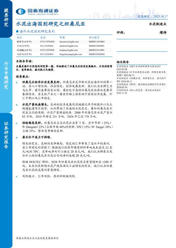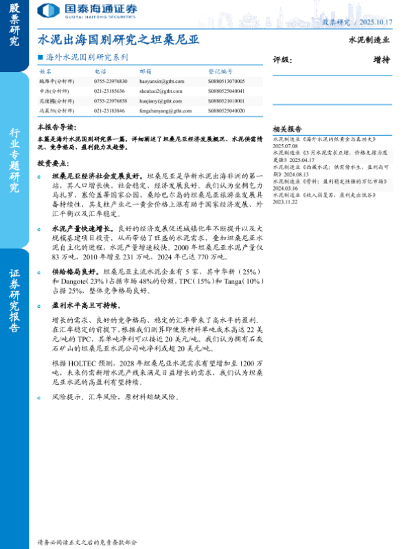 【国泰海通证券】【202504】水泥出海国别研究之坦桑尼亚-11页