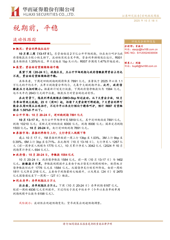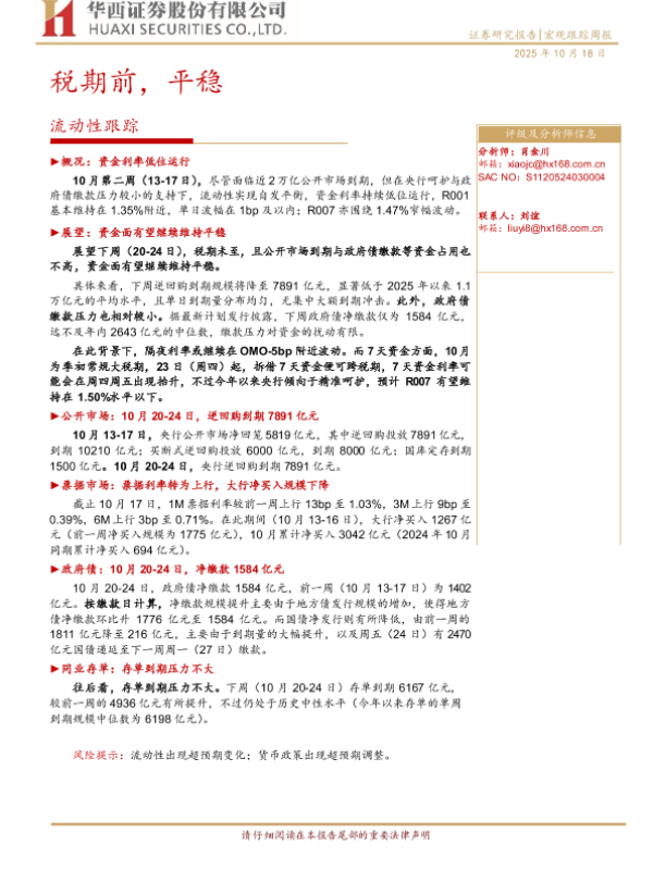 【华西证券】【202510】流动性跟踪:税期前,平稳-14页