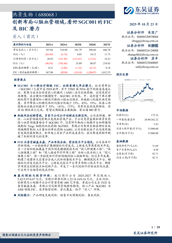 【东吴证券】【202510】热景生物创新布局心脑血管领域,看好SGC001的FIC及BIC潜力-29页