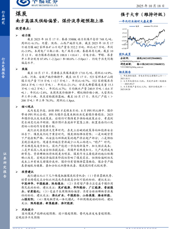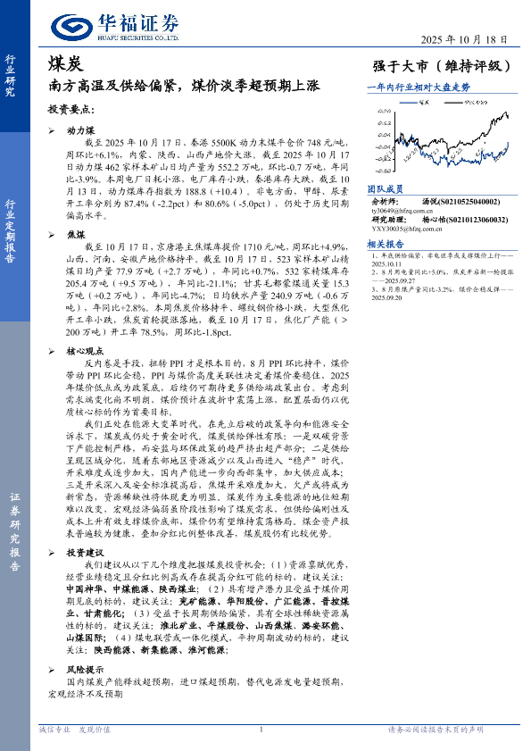 【华福证券】【202510】南方高温及供给偏紧,煤价淡季超预期上涨-26页