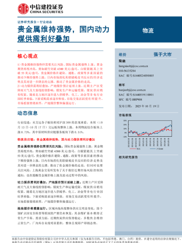 【中信建投证券】【202510】物流行业动态:贵金属维持强势,国内动力煤供需利好叠加-14页