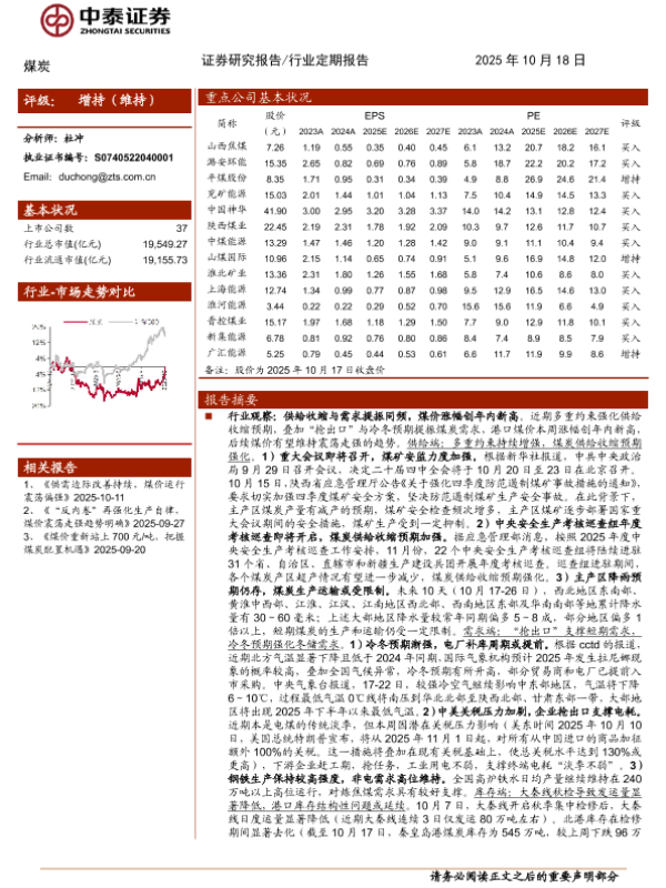 【中泰证券】【202510】煤炭行业:港口动力煤价格周涨幅创新高,多因素利好催化板块走强-23页