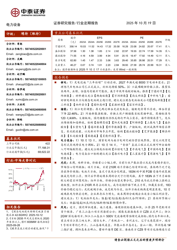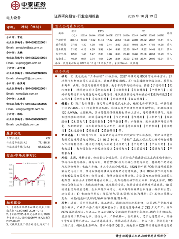 【中泰证券】【202510】电力设备:充电设施“三年倍增”行动启动,海风审批、招投标进展加速-16页