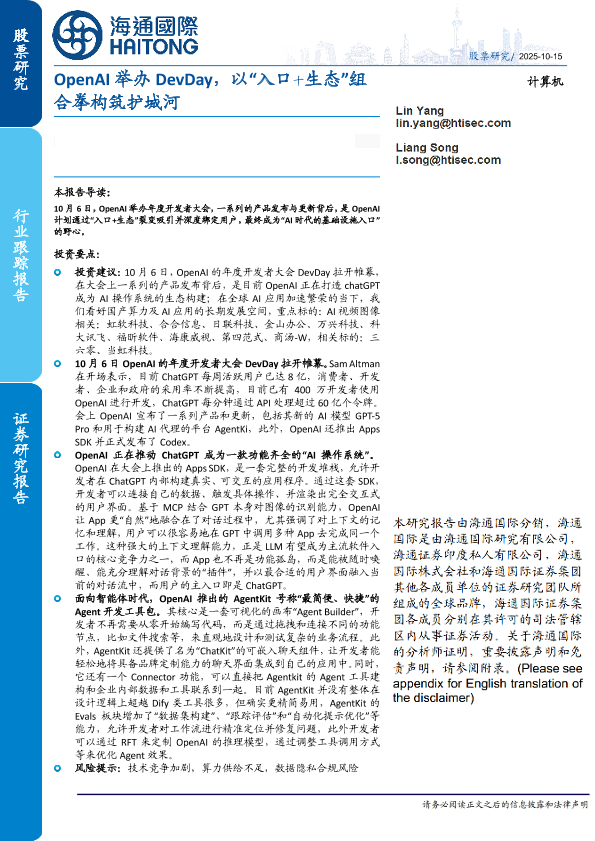 【海通国际】【202510】OpenAI举办DevDay,以“入口十生态”组合拳构筑护城河-11页