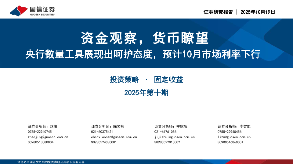 【国信证券】【202510】资金观察,货币瞭望:央行数量工具展现出呵护态度,预计10月市场利率下行-28页