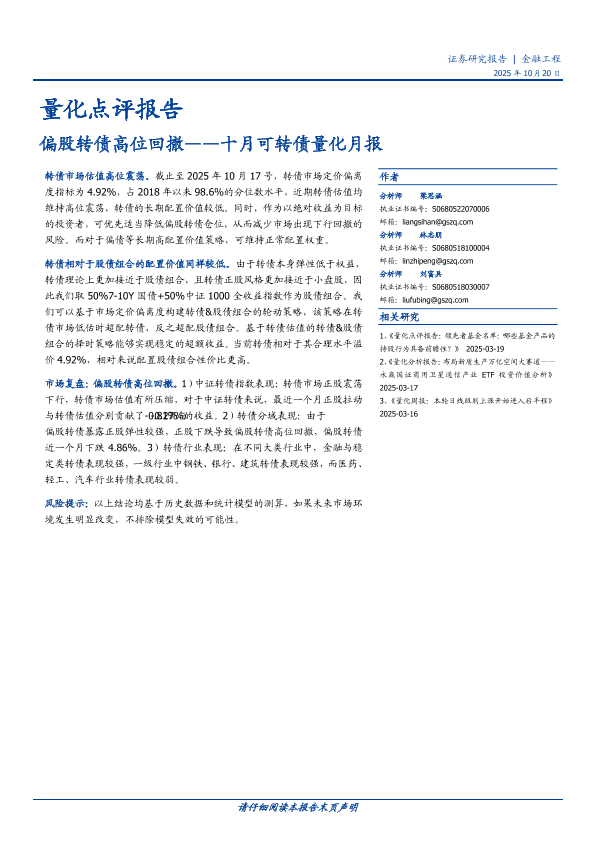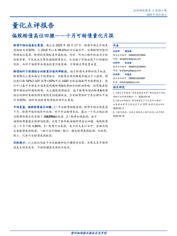 【国盛证券】【202510】量化点评报告:偏股转债高位回撤——十月可转债量化月报-15页