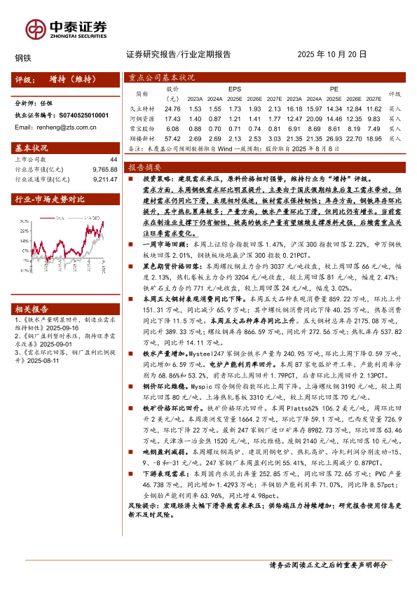 【中泰证券】【202510】钢铁行业:建筑需求承压,原料价格相对强势-16页