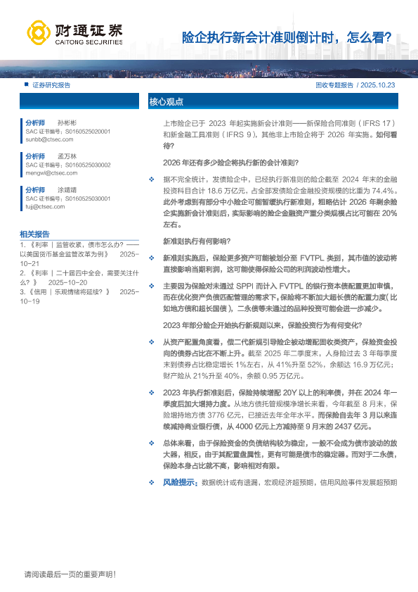 【财通证券】【202510】险企执行新会计准则倒计时,怎么看?-15页