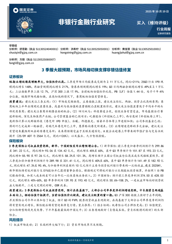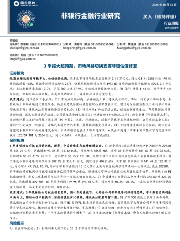 【国金证券】【202510】非银行金融行业研究:3季报大超预期,市场风格切换支撑非银估值修复-10页