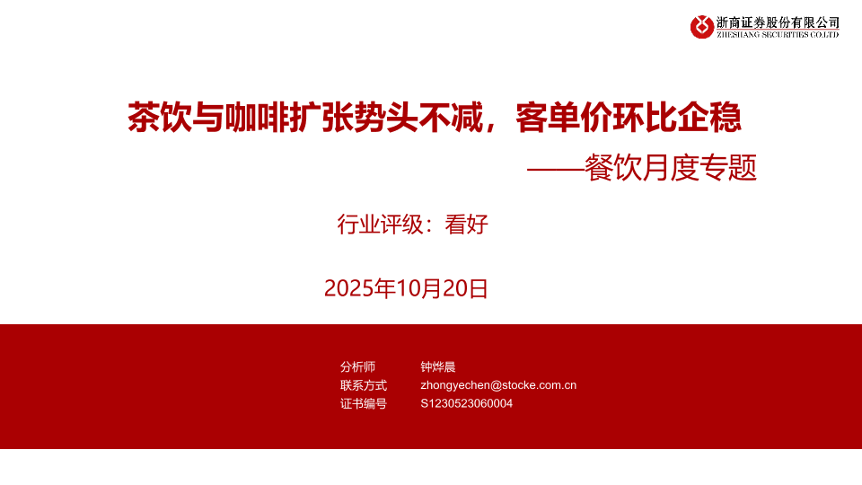 【浙商证券】【202510】餐饮月度专题:茶饮与咖啡扩张势头不减,客单价环比企稳-10页
