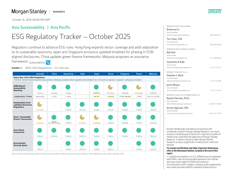 【Morgan Stanley】【202510】Asia Sustainability IA Asia Pacific ESG Regulatory Tracker-October 2025-15页