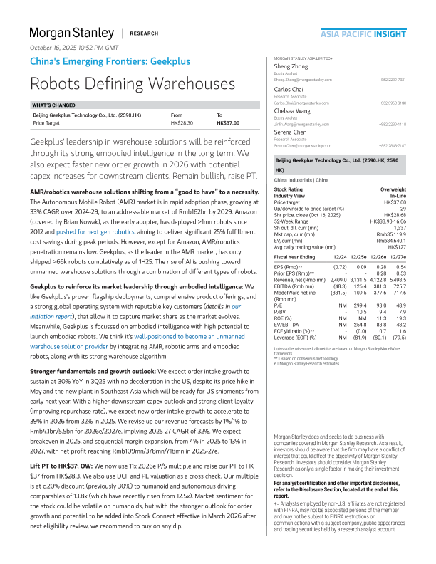 【Morgan Stanley】【2025】China's Emerging Frontiers Geekplus-32页