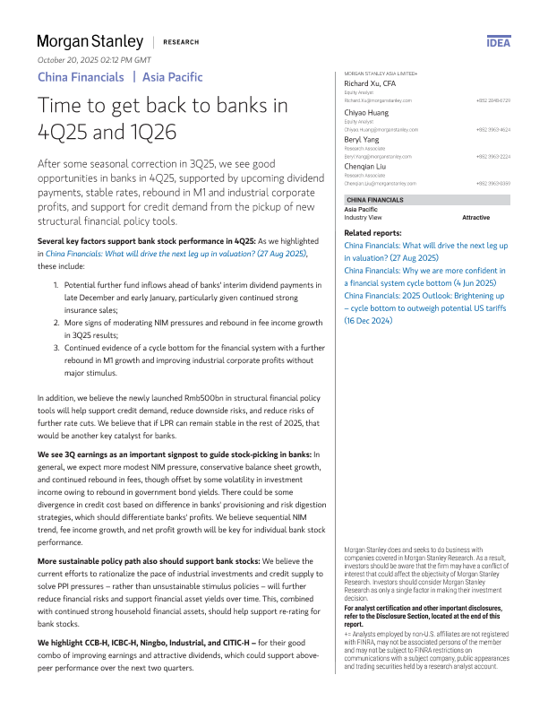【Morgan Stanley】【2025】Time to get back to banks in 4Q25 and 1Q26-18页