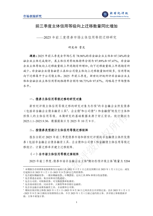 【新世纪评级】【2025】前三季度主体信用等级向上迁移数量同比增加——2025年前三度债券市场主体信用等级迁移研究-15页