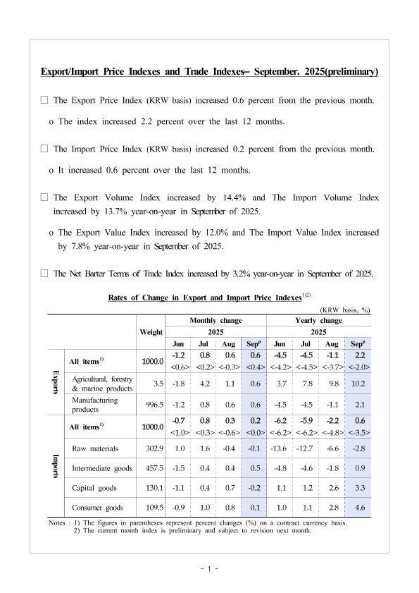 【韩国央行】【202509】Export/Import Price Indexes and Trade Indexes– September. 2025(preliminary)-18页