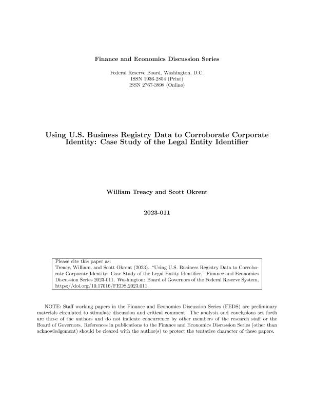 【Federal Reserve Board】【20230101】使用美国商业注册数据来证实公司身份:法律实体标识符的案例研究-55页
