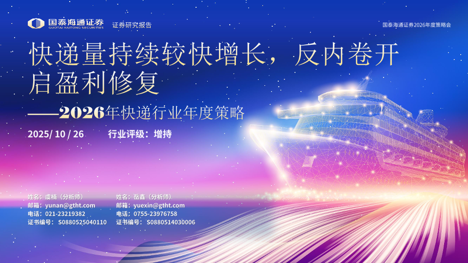 【国泰海通证券】【202510】2026年快递行业年度策略:快递量持续较快增长,反内卷开启盈利修复-31页